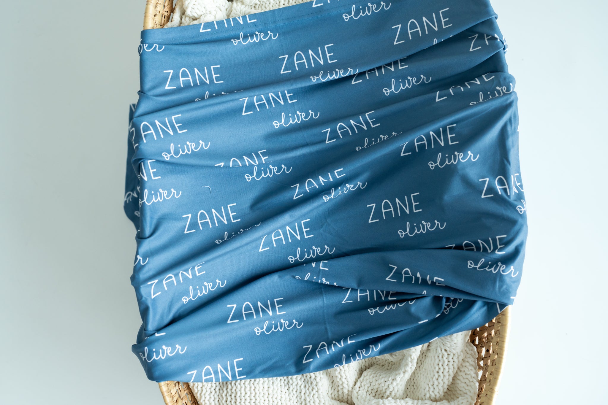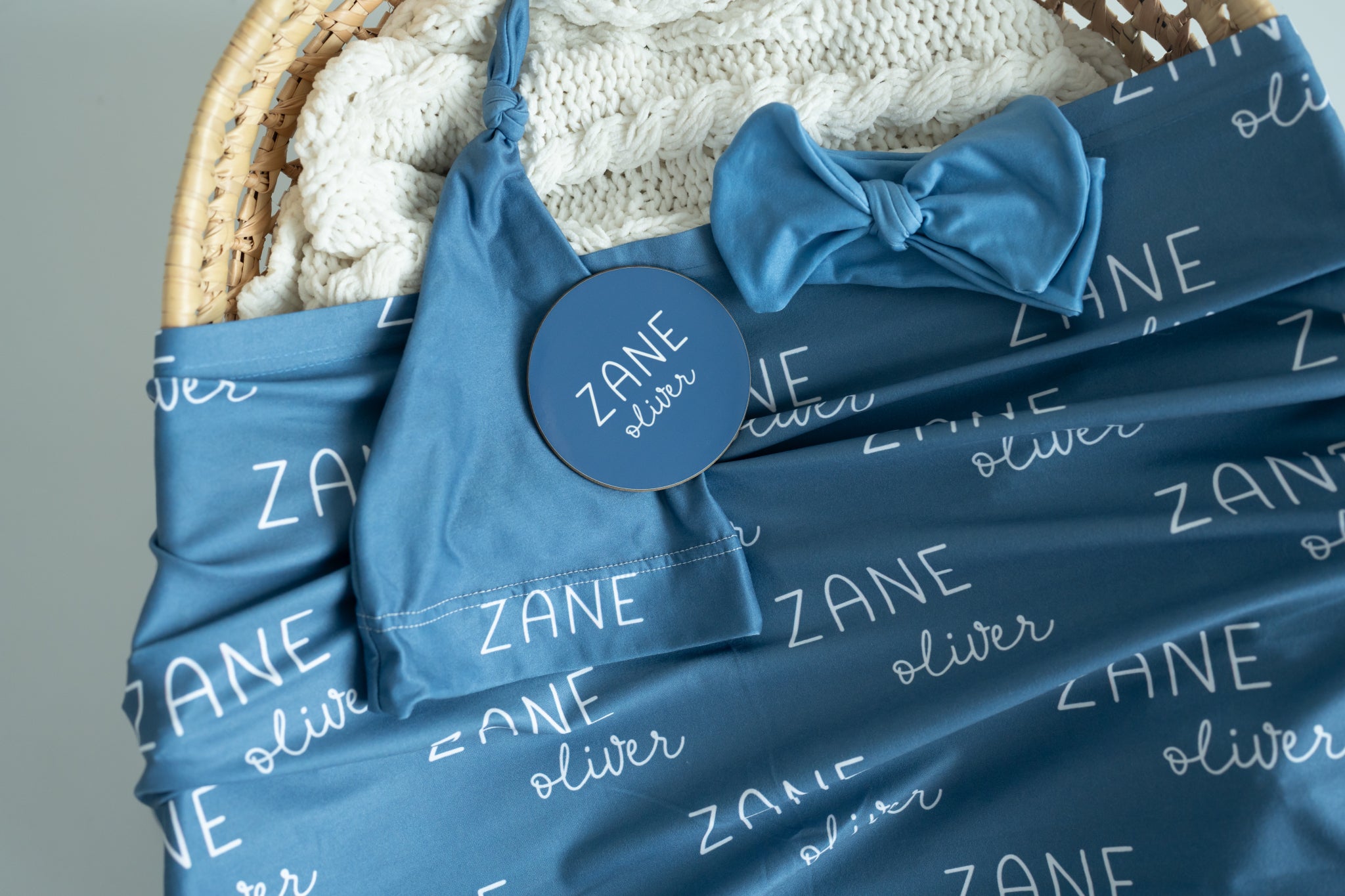 Personalized Baby Swaddle and Hat Set - Slate Blue